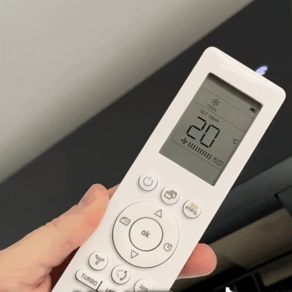 Regola temperatura, timer e modalità direttamente dal telecomando, godendoti il calore senza alzarti dal divano.