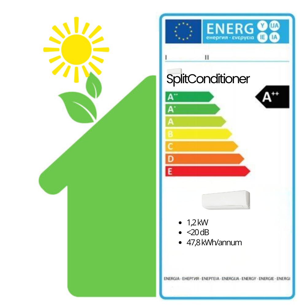 BASSI CONSUMI ENERGETICI Classificato con efficenza energetica A++ da 12.000 BTU garantisce un riscaldamento efficiente senza pesare sulla bolletta della luce con un consumo variabile da 500 a 1200 watt